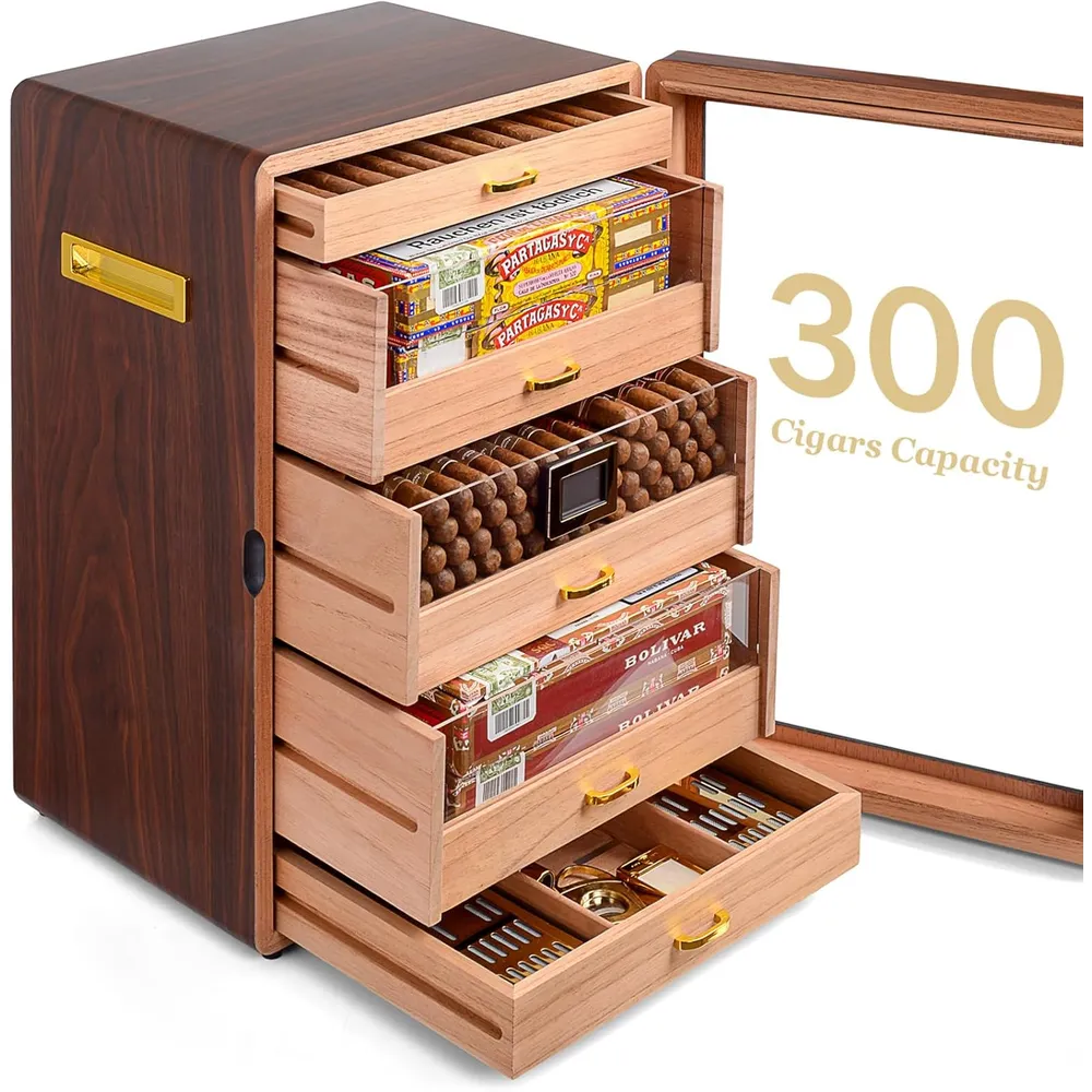 - 300 CAPACITY: The Cigar Humidors provides 5 movable cedar drawers with handles. Each drawer is fits for most electric cigar humidifiers