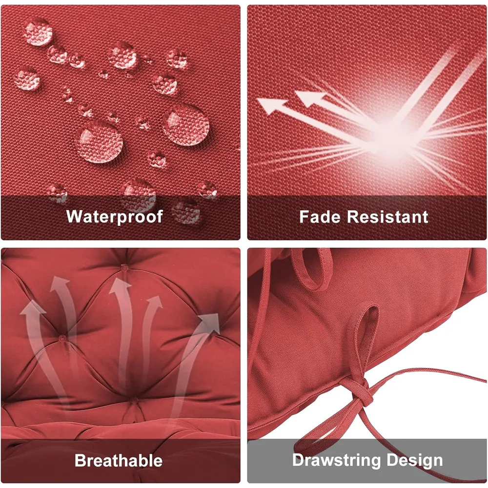 - SUITABLE FOR ALL SEASONS These outdoor swing cushions are made of high quality 99% soft waterproof polyester fiber, comfortable and durable, weather resistant, fade resistant, soft, breathable, skin-friendly, daily waterproof, high sunlight, can be used in all seasons.
