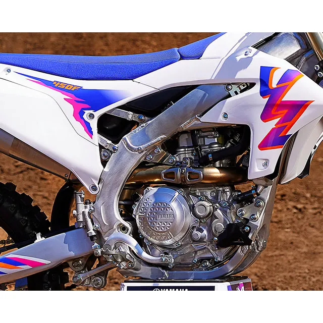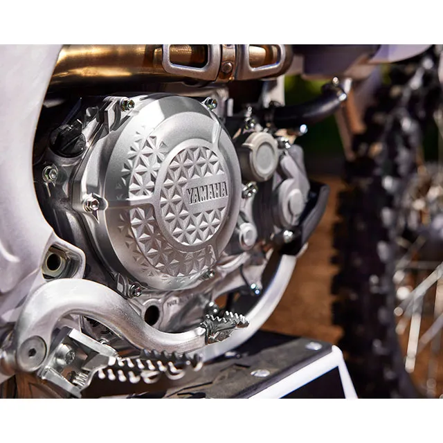 Featuring a reversed cylinder head layout, forged aluminum piston, titanium valves, lightened crank assembly and dry sump lubrication, the 2024 YZ450F’s advanced DOHC four-stroke engine is light, compact and world renowned for its incredibly broad pulling power across the entire rev range.