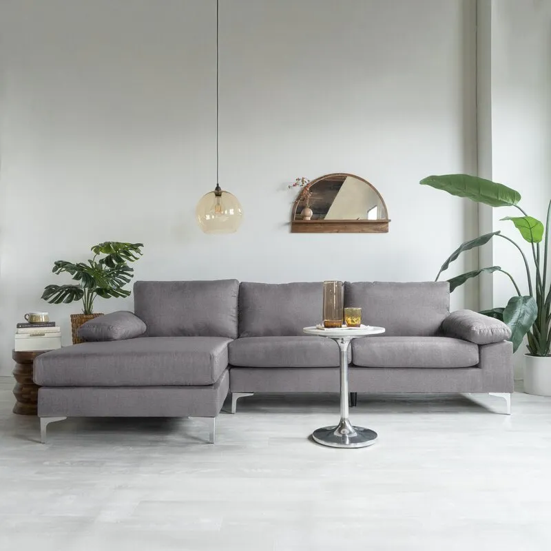 This sleek L-shaped sofa creates a welcoming gathering space in your living room or home office.