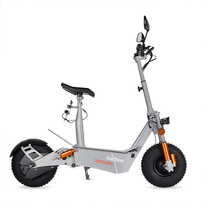 Si lo buscas es un patinete eléctrico todo terreno, gris y naranja, matriculable, cómodo y potente, Centauro es tu patinete ecológico que se convierte en ciclomotor para disfrutar por la ciudad.