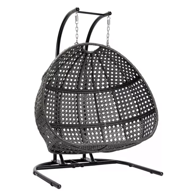 Fall into a fairytale world, a sci-fi fantasy, or a historic biographic adventure as you nest in this fun egg-shaped porch swing chair. This chair is a powder-coated solid steel frame and commercial grade hand woven all-weather PE rattan wicker that does not splinter like natural rattan. The cushion is made from outdoor fabric and filled with soft Cotton, breathable design. The combination of these materials ensures that the chair is weather-resistant yet stylishly comfortable. It fits two people and enough space for any position that you like.Sit in luxurious comfort while surrounded by the peace and beauty of your backyard, or enjoys a good book indoors with this comfortable hanging chair.