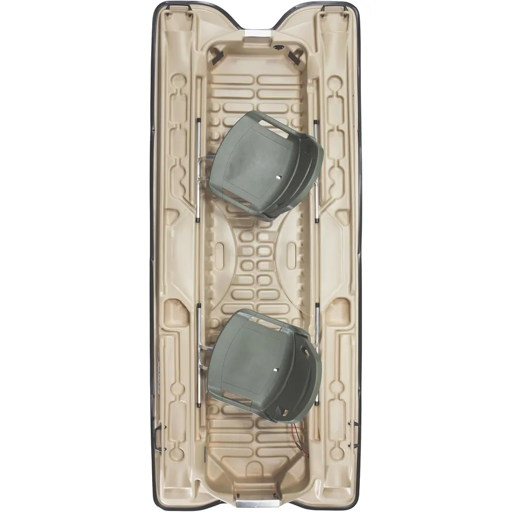 Two sliding, folding seats adjust along the tracks for perfect positioning. Each swivels 360° for comfort while fishing or accessing gear.