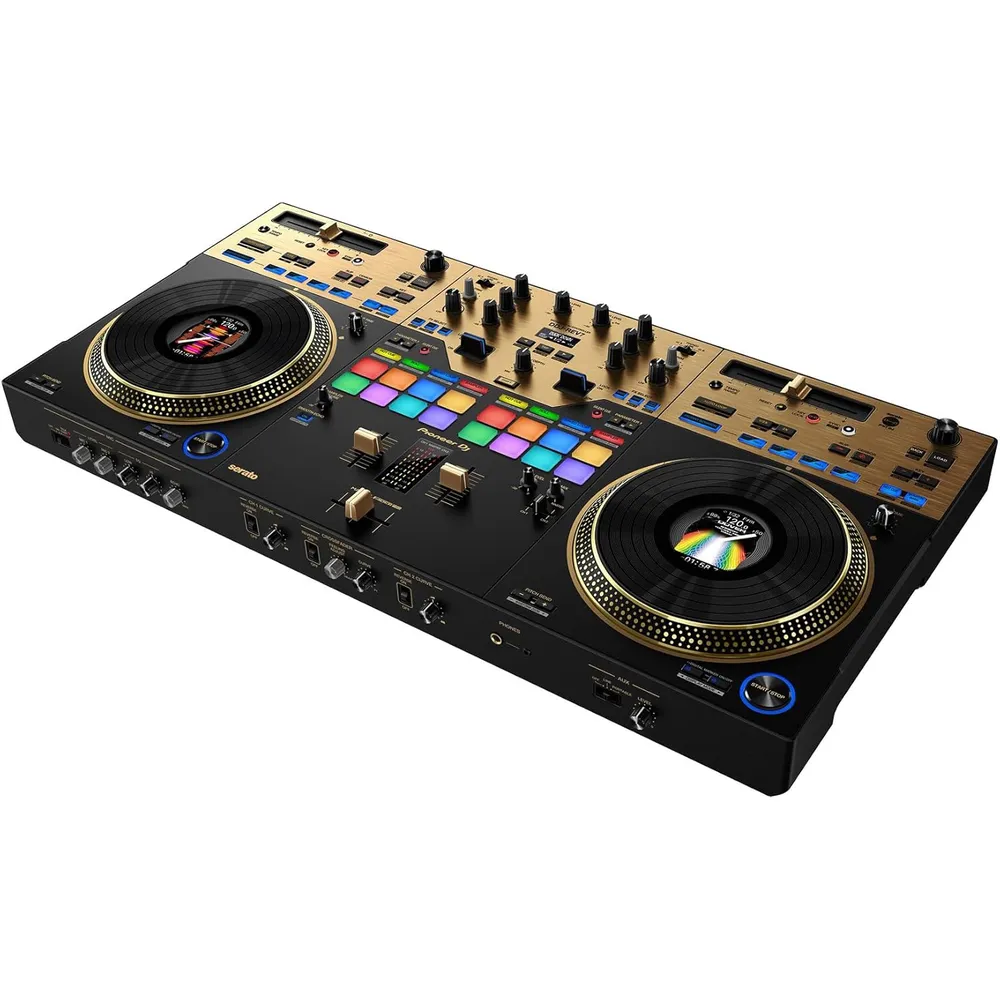 The DDJ-REV7-N is built to help you get the most from the Serato DJ Pro and rekordbox performance software and boasts a brand-new design that includes large, motorized jog wheels with On Jog Display to create a tactile connection between you and your music. The layout of this 2-channel unit emulates a professional DJM-S mixer + PLX turntable setup, and includes specialized features for open-format and scratch DJs.
