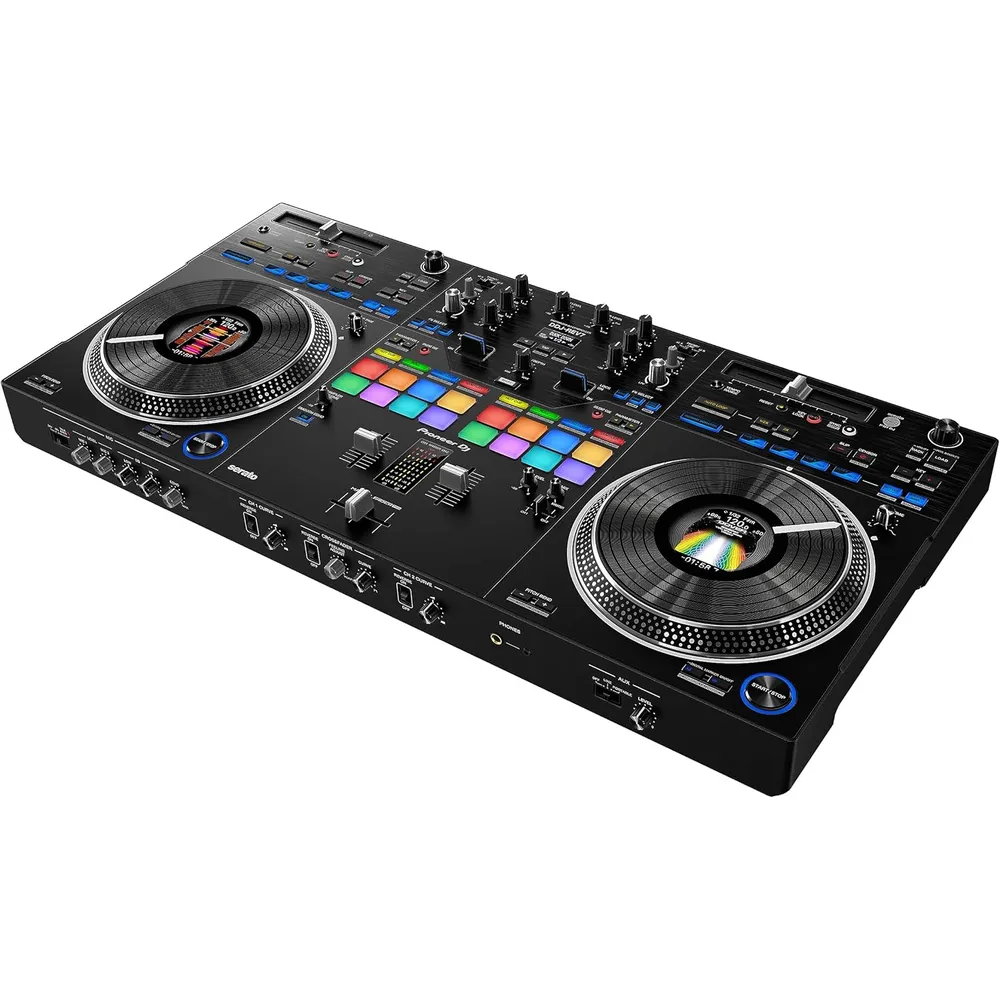 The DDJ-REV DJ Controller Series is an ideal solution for open-format and scratch DJs as it emulates a professional DJM-S mixer and PLX turntable setup. For the first time ever on a Pioneer DJ controller, the tempo sliders sit horizontally on the top of the deck sections to mirror PLX turntables in a battle configuration, while the Performance Pads and Lever FX paddles sit in the mixer section to parallel the DJM-S Series mixer design.