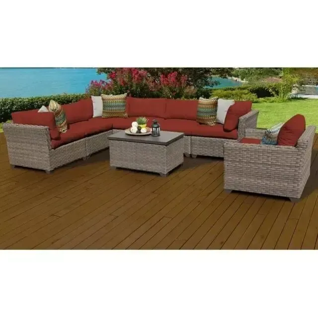 This outdoor furniture is perfect for when you want to sit back with a glass of wine and catch up with friends C or just catch up on some reading. This 8-piece patio seating set is crafted from rust-resistant aluminum wrapped in resin wicker. so you don’t have to worry about bringing it inside when the weather takes a turn. A large sectional sofa. club chair. and storage coffee table feature modern silhouettes for a fresh take on classic wicker furniture. This outdoor conversation set comes complete with fade- and water-resistant cushions in your choice of contemporary colors.