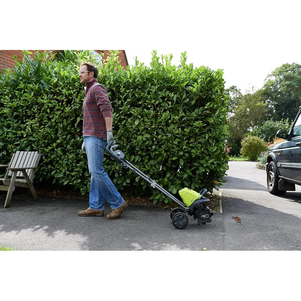 - Handle and double transport wheels to move the hoe easily and effortlessly