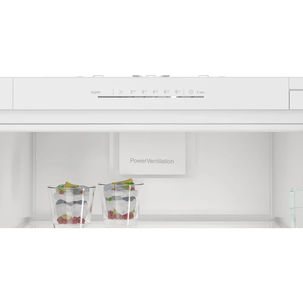 Now you can see all the items in your fridge in the best light. The built-in, energy-saving LED light provides even lighting throughout the fridge to keep all items in view, so you can see everything you have at a glance.As the LEDs are located at the front, they cannot be obstructed by items at the front. If your appliance features Home Connect, you can also switch the LED light on and off, or adjust its brightness, via your Home Connect app.