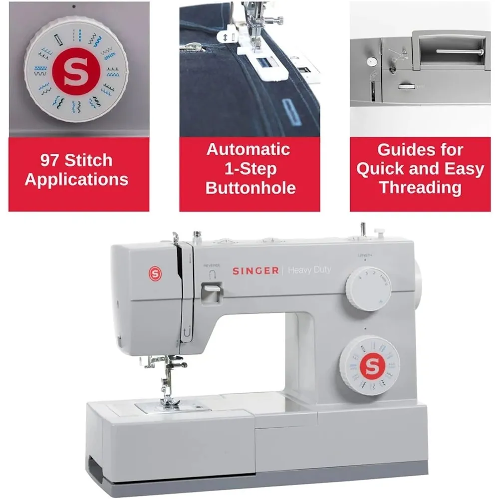- HEAVY DUTY METAL FRAME: The Singer 4423 heavy duty sewing machine is a true workhorse. With a heavy-duty metal interior frame, stainless steel bedframe, extra-high sewing speed and powerful motor, this sewing machine can sew through a variety of heavy weight fabrics and provides long lasting stability