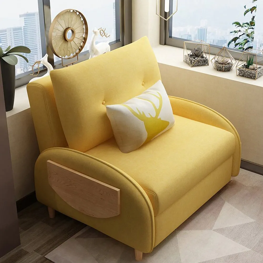 Single Sofa Bed,Folding Fabric Lazy Sofa, Soft And Comfortable Single Recliner Can Stored, 3 Levels of Backrest Angle Adjustment, Suitable for Living Room, Office, Bedroom Sofa,Yellow,1.2M quantity