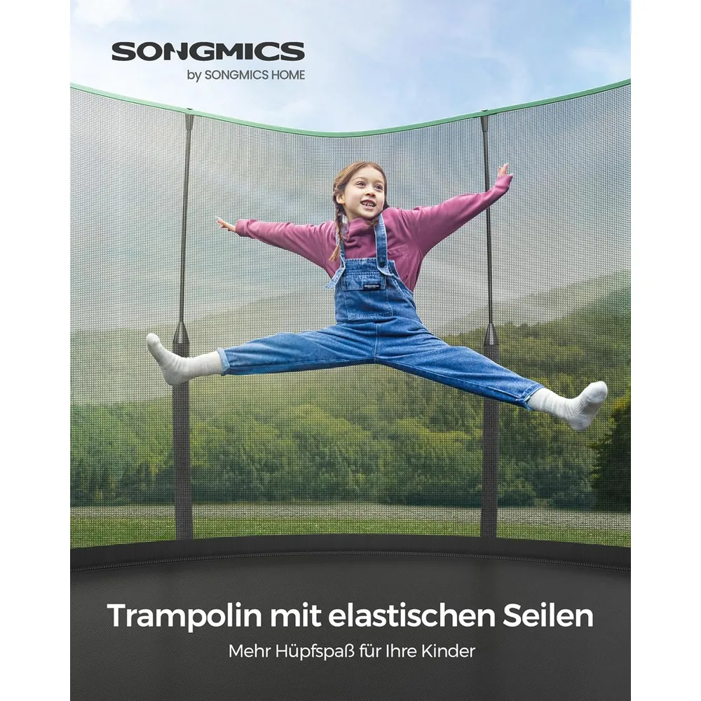 - Höhere Elastizität & weniger Geräusch: Beim Springen ist dieses Gartentrampolin elastischer und geräuscharmer als ein Federn-Trampolin. Schenken Sie Ihren Kinder noch mehr Hüpfspaß im Freien.