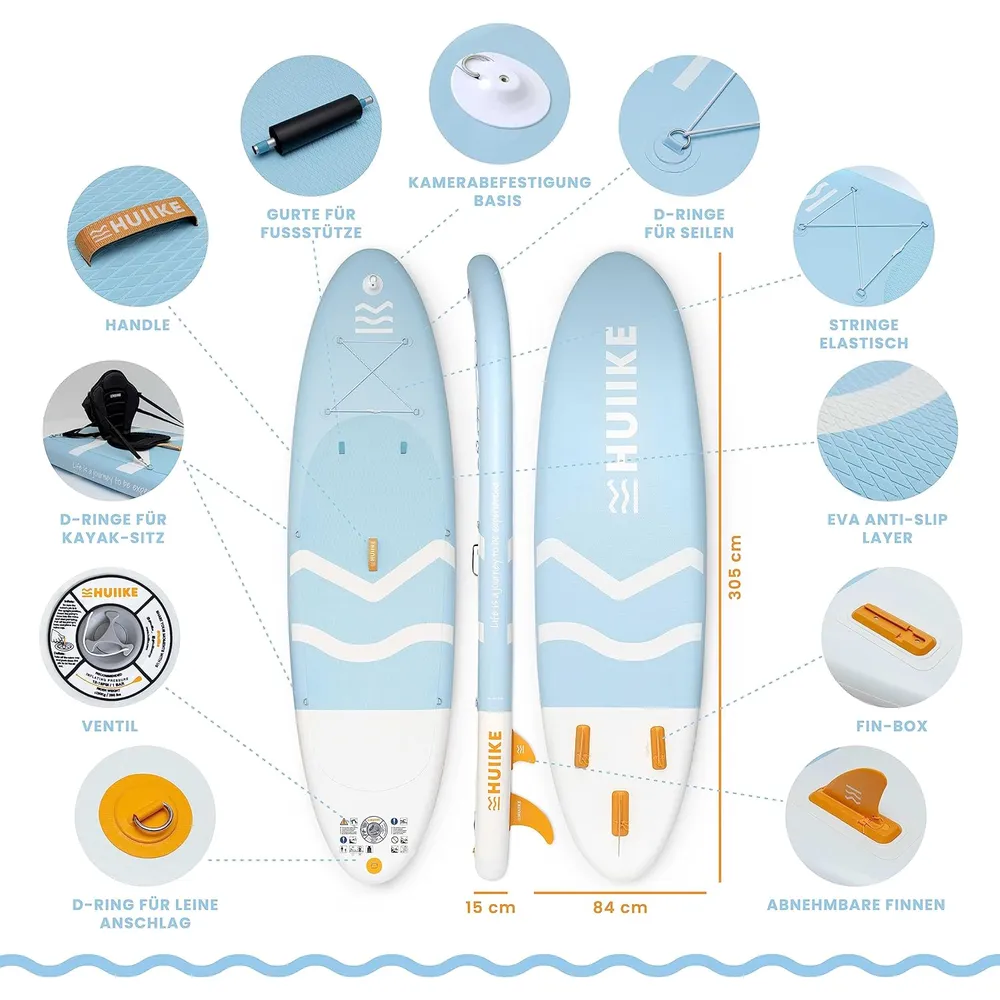 🏄‍♂️ GUARANTEED STABILITY 🏄‍♂️ The width of our HUIIKE Stand Up Paddle ensures superior stability so you can enjoy your ride without constantly falling into the water. Our SUP paddle board is suitable for users of all ages. In addition, it features a layer of EVA foam on the surface to provide better grip and prevent slipping. It makes an excellent gift for men and women on birthdays and Christmas