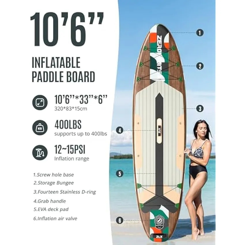 | Included Components | ZLX paddle board, adjustable paddle, detachable fins, safety leash, air pump, sup backpack, waterproof phone bag, repair kit, product instructions |
